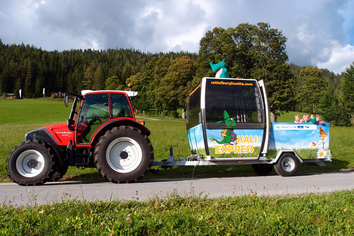 Der Kali-Express ist ein besonderes Highlight in Ramsau am Dachstein: Ein Traktor-Shuttle mit nostalgischer Gondelkabine, das während der